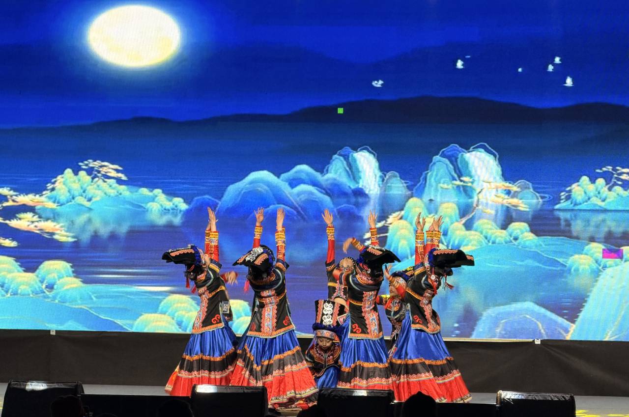 戏曲联唱《祖国你好》《中国脊梁》以传统唱腔表达了对祖国的美好祝愿。随后,《如愿》《但愿人长久》的旋律响起,歌者温婉的演唱与中秋的月色相得益彰,不少观众随着节奏轻轻晃动身体,沉浸在团圆的温馨氛围中。彝族女子群舞《乌蒙丽影》展现了浓郁的地方特色,舞者们用优美的动作展现出乌蒙山区的少数民族风情。