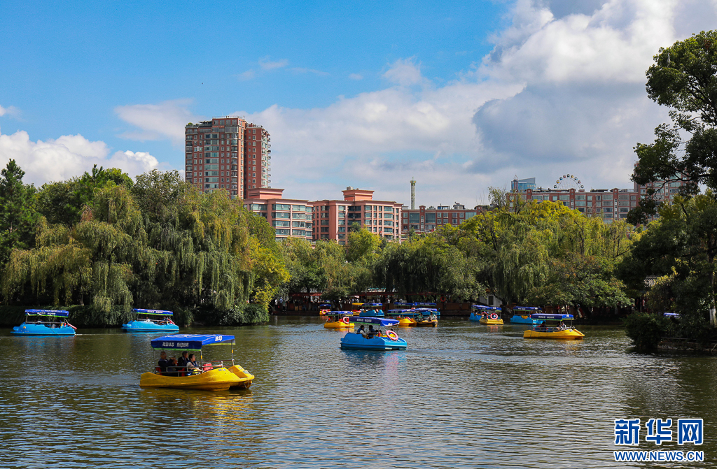 游客在昆明大观公园拍照(10月1日摄)。郑益/摄
