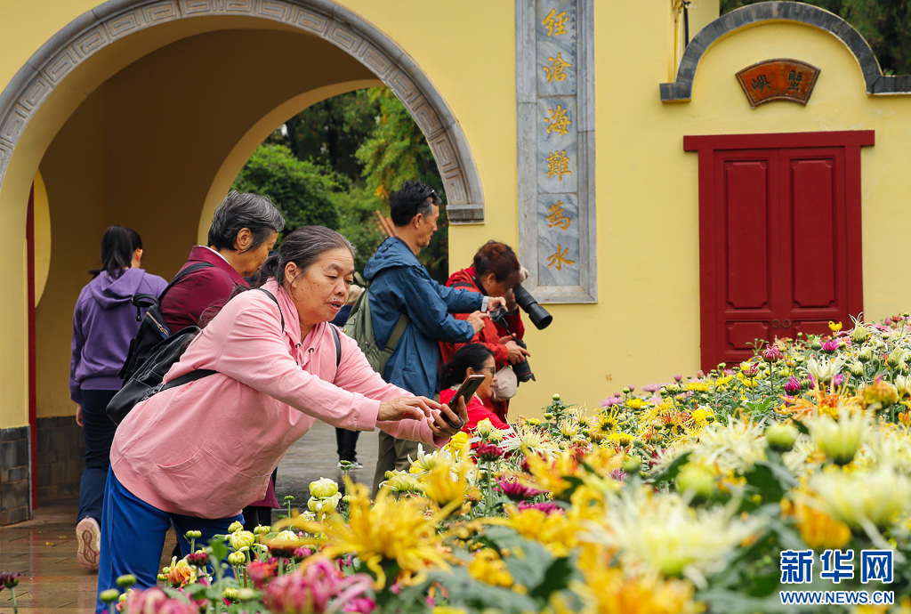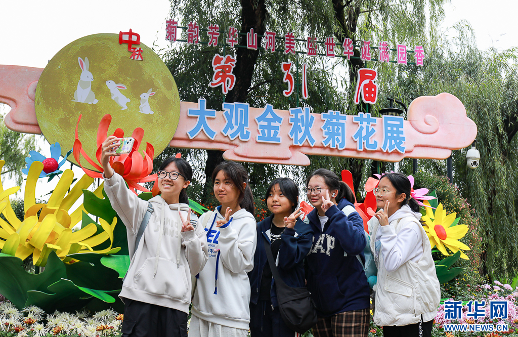 前来大观公园观赏菊花的游客(10月1日摄)。郑益/摄
