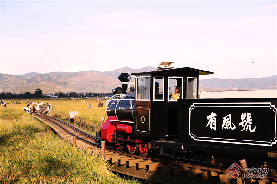 “喜洲号”“有风号”小火车满载游客在稻田间穿行,形成独特的移动风景线。