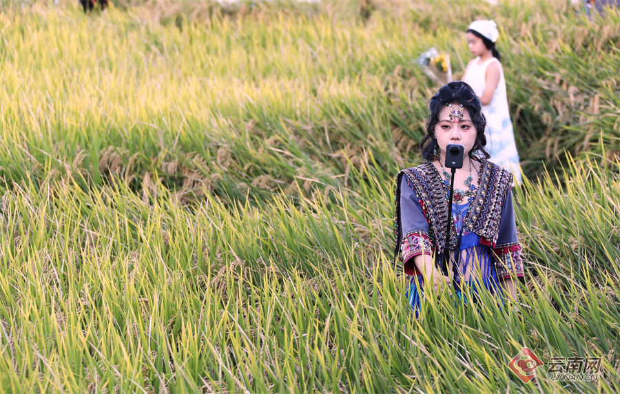 金秋十月,大理喜洲稻田一片金黄引来四方游客