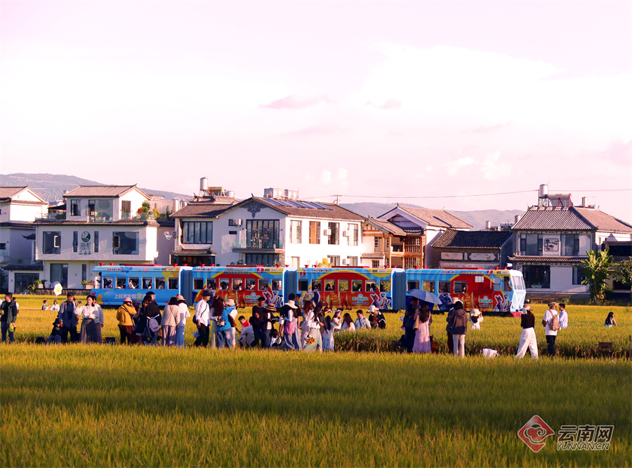 “喜洲号”“有风号”小火车满载游客在稻田间穿行,形成独特的移动风景线。