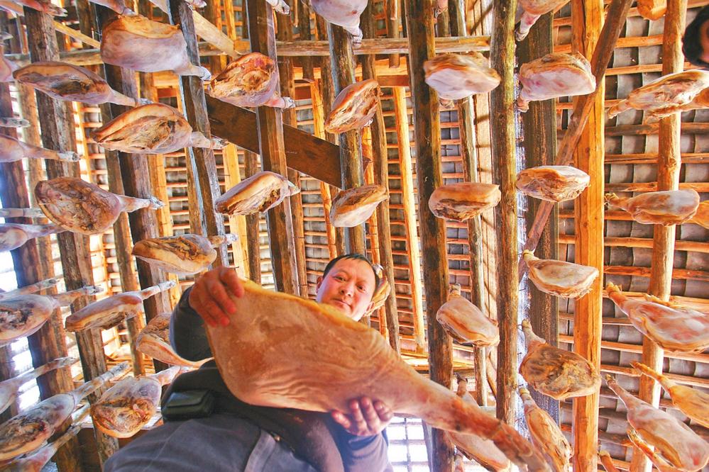 加工贮存诺邓火腿。通讯员旷宏飞/摄