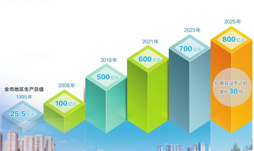 30年来,安宁市以加快发展为要,以经济转型为轴,以发展解危难,以改革来闯关,一路上披荆斩棘、负重前行,历经经济转轨、规模扩张、统筹发展3个创业阶段,走出了一条从原地起立到发展起跳、由跳起摸高到再生跨越的奋进轨道,从产业形态到空间格局,从发展基础到综合实力,攀上了经济社会发展的制高点。全市地区生产总值从1995年的25.5亿元起步,2008年突破100亿元大关,2018年跨越500亿元,2021年超过600亿元,2023年站上700亿元台阶,2025年预计达到800亿元,较撤县设市之初增长30倍。