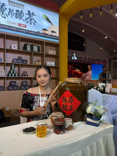 “采用德昂族酸茶制作技艺制作出来的茶叶产品我们称之为德昂酸茶,它不仅仅是一种饮品,更是我们德昂族的灵魂所在,是连接我们与祖先的桥梁,更是乡村振兴的宝贵财富。德昂酸茶发酵时间在6至12个月,你们喝到的每一杯酸茶都凝聚了我们每一位制茶人的心血。”九年来,李岩所始终扎根于德宏三台山乡——这片德昂酸茶的发源地。他就像一位虔诚的守护者,坚守着传统技艺制茶的初心,用双手和智慧,让这项古老技艺在新时代焕发出勃勃生机,成为带动乡亲们增收的“金叶子”。