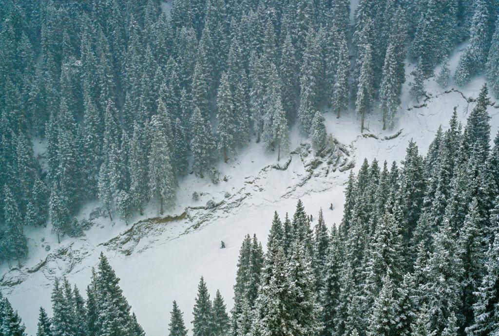 游客在新疆乌鲁木齐丝绸之路山地度假区滑雪(2025年1月23日摄,无人机照片)。新华社记者陈朔摄