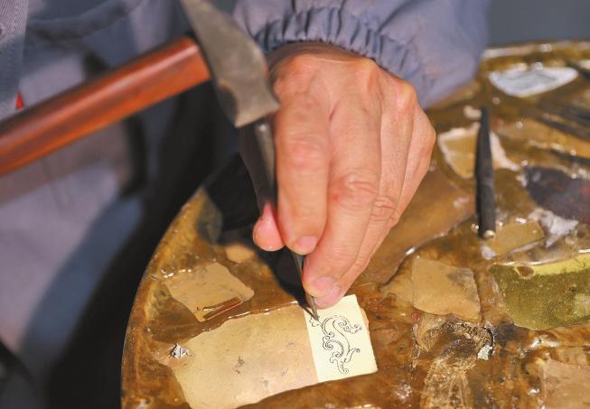 錾刻花纹的银片与铜丝逐渐让残缺的杯盖重获新生。