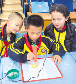 最热闹的环节当属互动体验。学生们分成两组,有的小心翼翼地把永生花粘到戒指、胸针上,有的在老师指导下尝试用糖画笔作画。“我要把这个永生花戒指送给妈妈。”刚完成作品的学生李沫宇举着自己的作品,脸上满是自豪;另一边,拿到糖画的学生则舍不得立刻吃掉,而是举在手里和同伴分享这份 “甜蜜成果”。