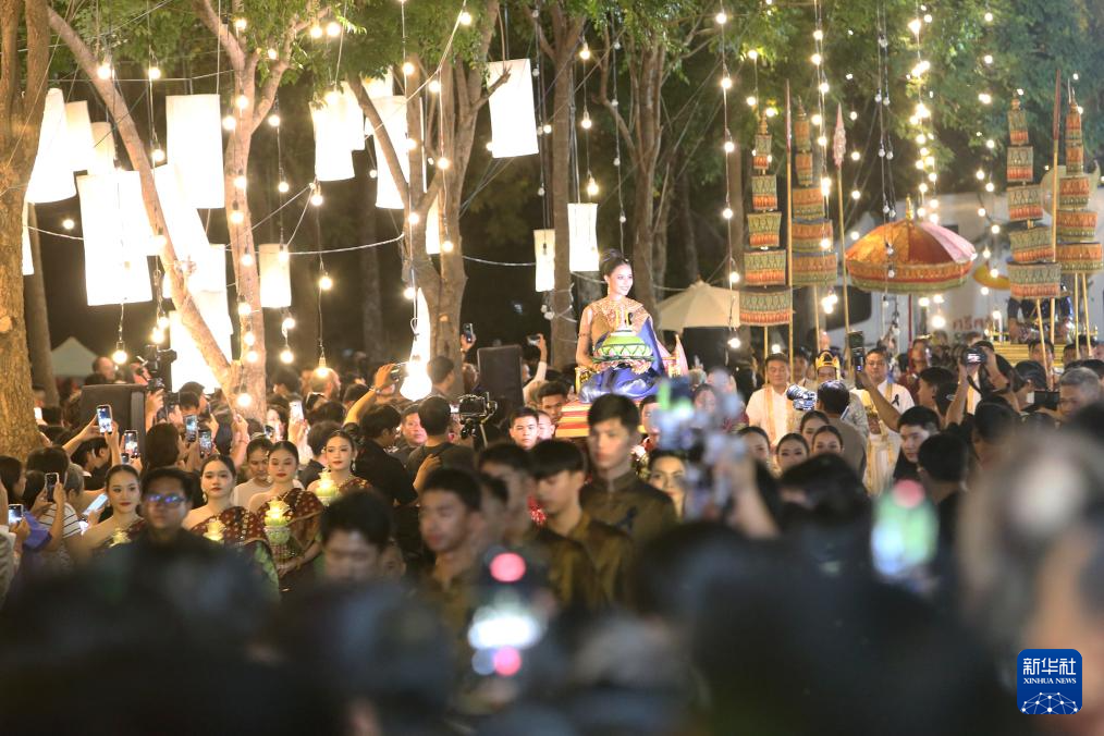 11月5日,民众在泰国大城府参加水灯节庆祝活动。