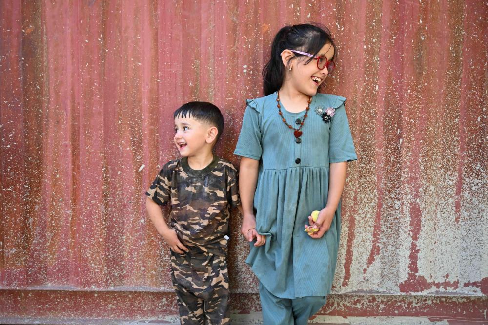 在塔吉克斯坦戈尔诺-巴达赫尚自治州卡拉伊洪姆附近,基什瓦尔与他的孩子们合影。