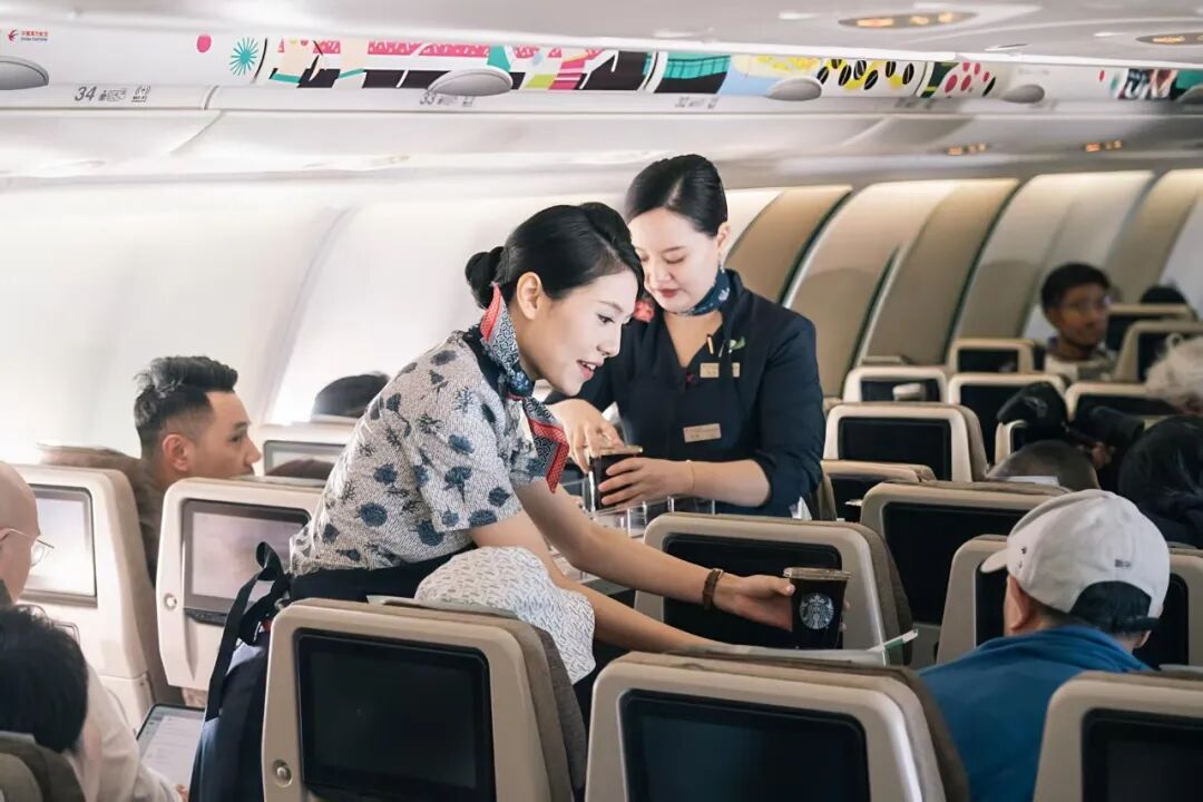 在上海飞往昆明的航班上,来自世界各地的乘客正在品尝一杯来自星巴克臻选的云南的黄波旁咖啡。
