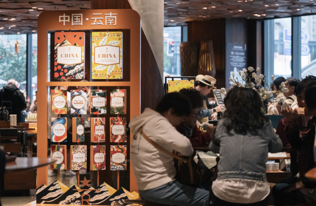 今年十月,马孝金带着自己在云南孟连种出的咖啡豆,来到星巴克臻选上海烘焙工坊,同更多咖啡从业者交流学习。作为被咖啡改变命运的无数咖农之一,他或许不知道,几天前这里刚发生过热闹的一幕:来自韩国、印尼、美国的咖啡爱好者,在门店挑选咖啡豆卡上写着“China”的咖啡豆做伴手礼,而他的云南孟连咖啡豆,和余祖贵种出的黄波旁咖啡豆,被抢购一空。