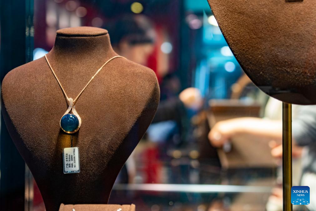 This photo shows a piece of jewelry from the Dominican Republic at the Consumer Goods exhibition area of the eighth China International Import Expo (CIIE) in east China's Shanghai, Nov. 7, 2025. The eighth CIIE opened here on Wednesday. Enterprises from a total of 123 Belt and Road partner countries participated in this year's CIIE, increasing by 23.1 percent year on year. (Xinhua/Ding He)
