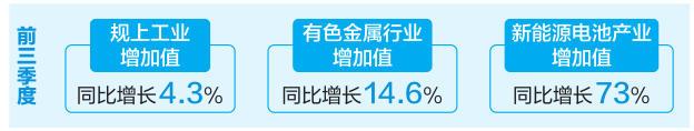 依托良好的资源禀赋和产业基础,我省有色金属等重点传统行业持续跑出加速度。前三季度,全省有色金属行业增加值增长14.6%,对规上工业增加值增速贡献率达到31%;10种有色金属增长15%。