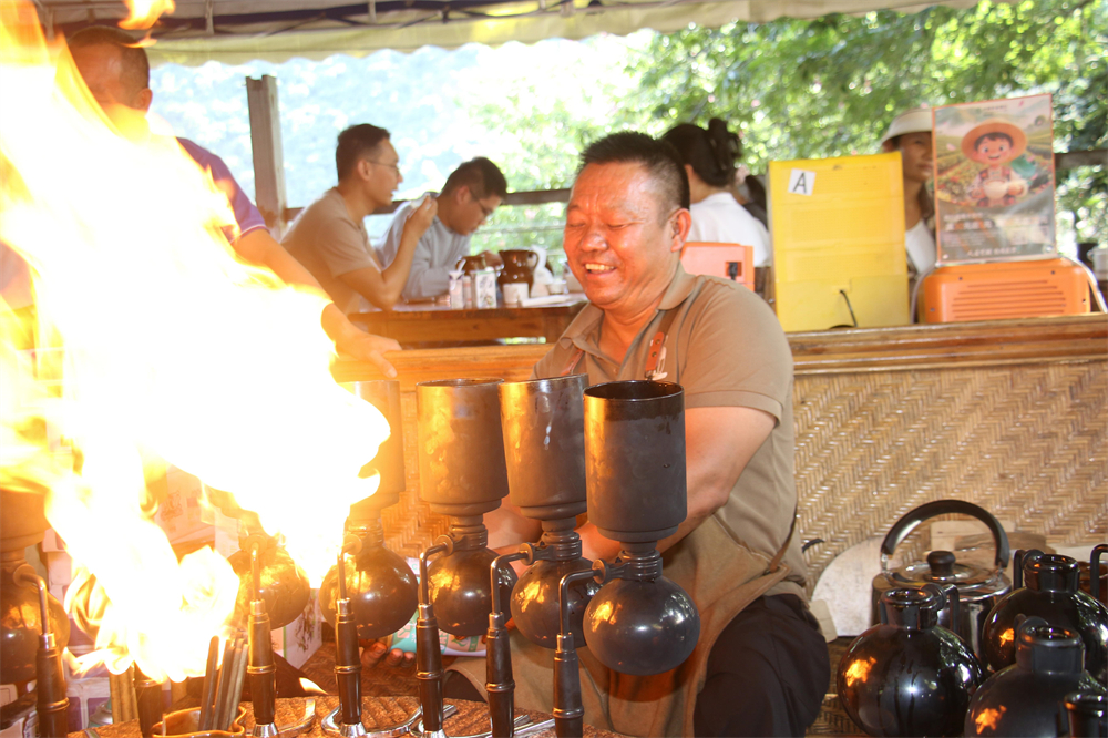 沿六曼公路行至双虹桥,人未至,香已迎。来自各地的游客举着手机,记录这难忘时刻。李金合手法娴熟,在升腾的热气中介绍:“我们的咖啡从种植到烘焙全由我完成,连调味所用的蜂蜜也采自自家蜂群,能充分释放咖啡的醇厚风味。”