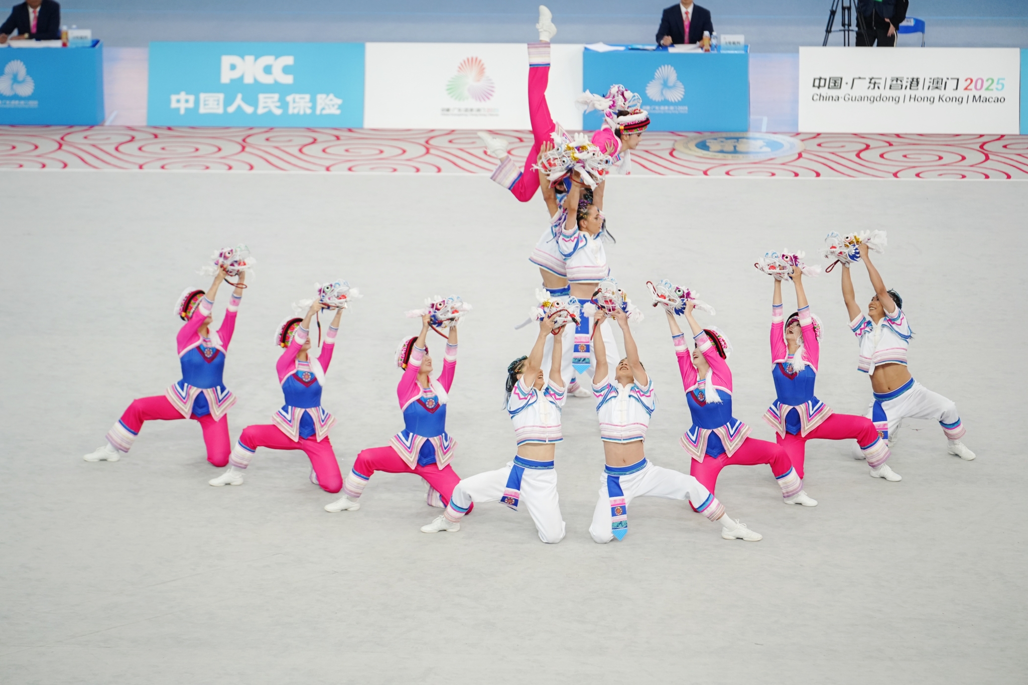 本届全运会首次将舞龙舞狮纳入群众展演项目,赛事设南狮自选、南狮障碍、南狮传统、舞龙障碍、北狮自选、舞龙规定、舞龙自选、彩带龙自选等八个比赛项目。预赛阶段,我省选派自云南民族大学、云南体育运动职业技术学院的多支参赛队伍均发挥出色,舞龙规定、舞龙障碍、彩带龙自选三项赛事悉数晋级决赛。自5月份预赛结束后,在省体育局指导与支持下,各参赛队持续依托所在院校开展常规训练,不断巩固竞技水平。从10月初起,省体育局专门组织为期1个月的集中训练,有效提升队伍整体状态,为决赛做好充分准备。