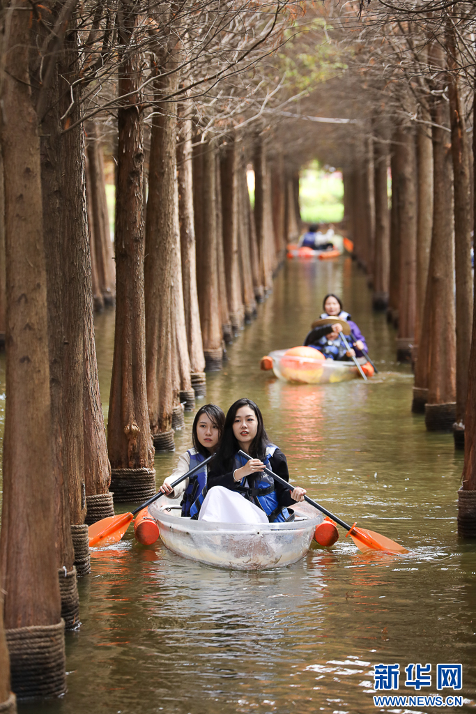 游客在湿地公园内拍照打卡(11月15日摄)。新华网发(郑益 摄)