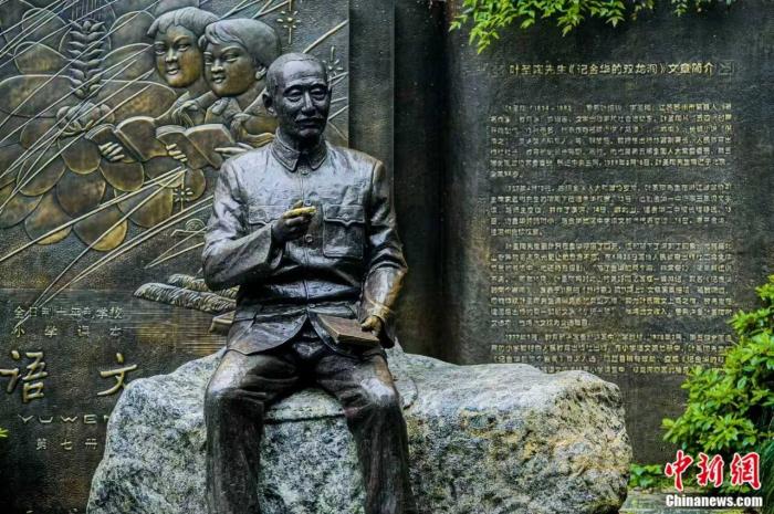 双龙洞景区中的叶圣陶铜像。金华山双龙风景旅游区管委会 供图