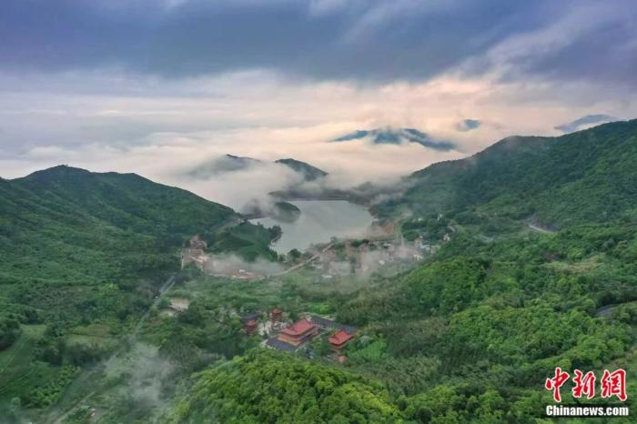 金华山的鹿女湖与云海。黄泽振 摄