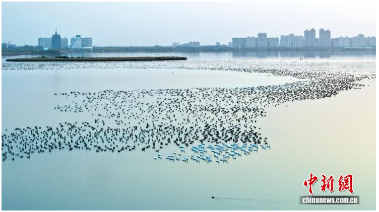 “京津冀最美湿地”衡水湖:天鹅、雁阵、“鸟浪”罕见同框