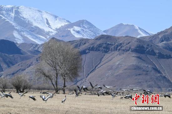 西藏:越冬黑颈鹤“做客”林周 绘就生态乐园