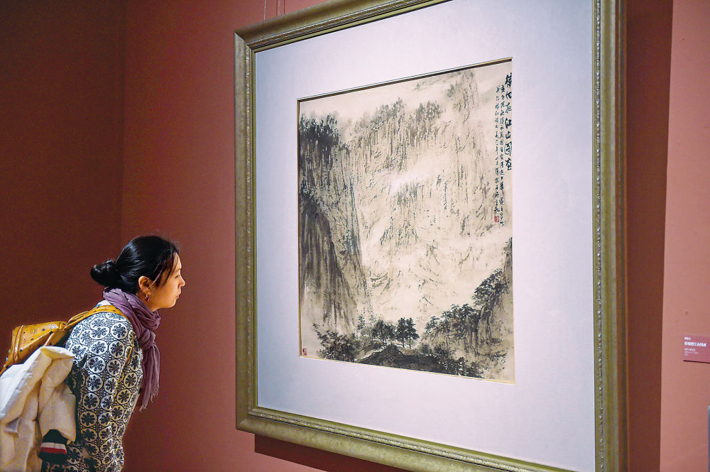 观众在中国美术馆参观展出的傅抱石作品《待细把江山图画》。新华社资料片