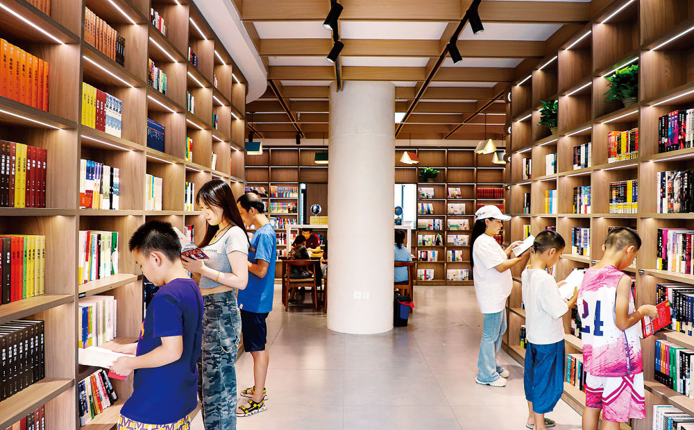 少儿阅读区里,志愿者正带领孩子们走进安徒生的童话世界。“我们社区经常在这里举办读书活动,目前的计划是一年20多场。”社区工作人员介绍,抱石书房多由社区闲置空间改造而成,配备自助借还书机等智能化设备,通过“政府建设+书店供书”的公益合作模式,确保图书常换常新。