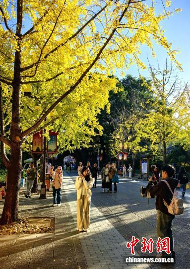 图为桂林市靖江王城历史文化旅游休闲街区的银杏,吸引市民游客拍照打卡。李腾钊 摄