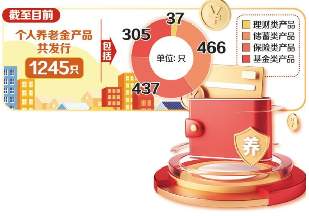 11月25日,个人养老金制度正式实施三周年,在产品供给方面,目前已涵盖储蓄存款、理财产品等多种类型,多元供给格局加速形成。国家社会保险公共服务平台数据显示,截至目前,共发行1245只个人养老金产品,包括37只理财类产品、466只储蓄类产品、437只保险类产品和305只基金类产品。