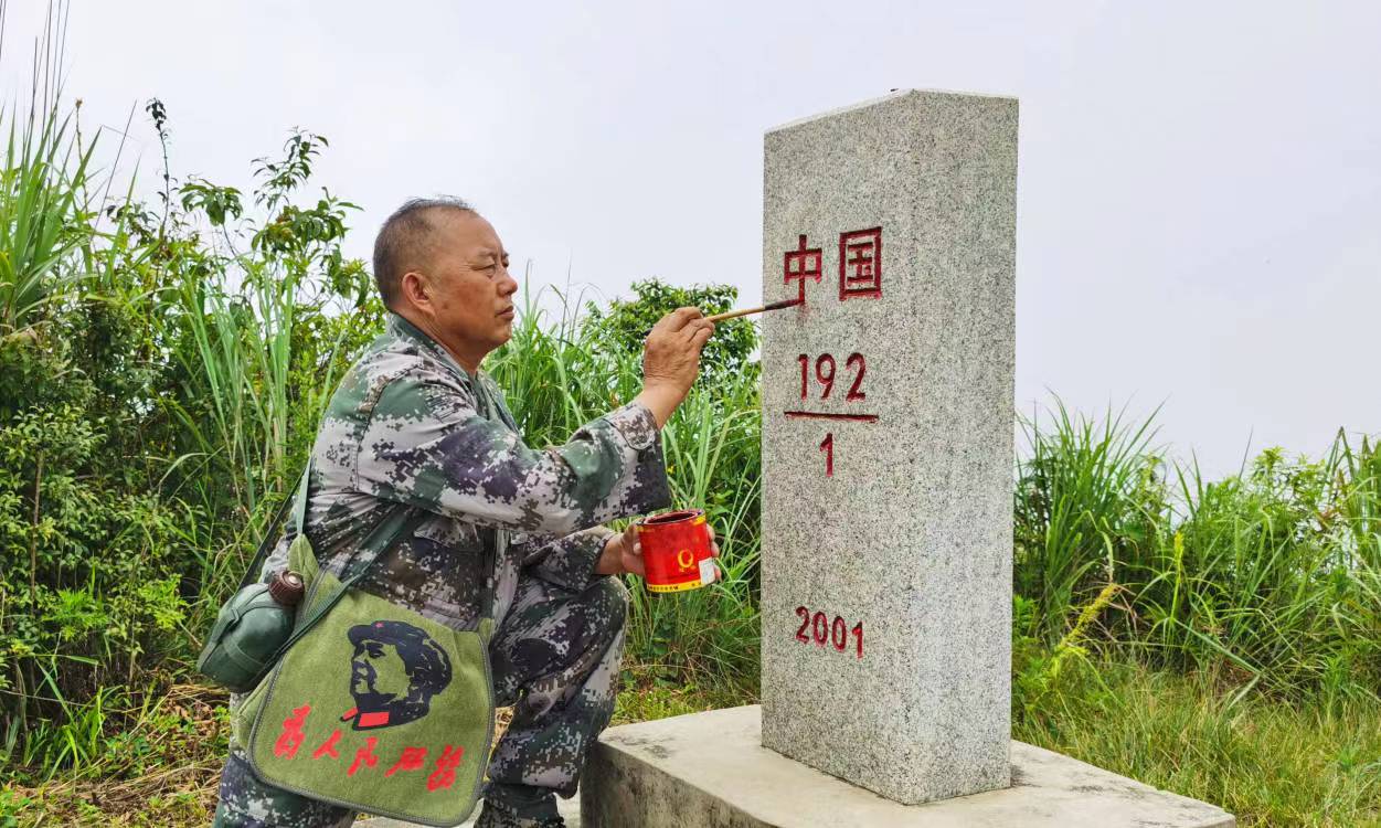 在熊光泽心里,界碑就是自家的“传家宝”。每次巡边,他的背包里总少不了两样东西:一把镰刀,用来砍路边的杂草;一支油漆笔,用来给界碑上的“中国”二字描红。每一次描红,都像是在勾勒各民族共同守护的家园,这两个字早已深深烙在他的心里,也烙在每个边境同胞的心中。