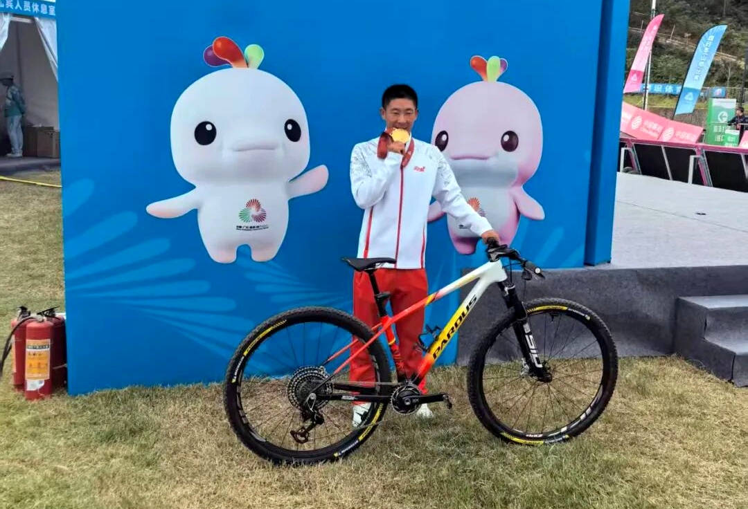11月20日,广东恩平的山地自行车赛道上,身着红色战服的云南名将、会泽籍运动员吕先景如一道闪电冲过终点——他以1小时22分24秒的成绩,在第十五届全国运动会山地自行车男子越野赛中夺得金牌!这枚沉甸甸的金牌,不仅为云南代表团增添了浓墨重彩的一笔,也开启了会泽健儿在本届全运会上的夺牌序幕。