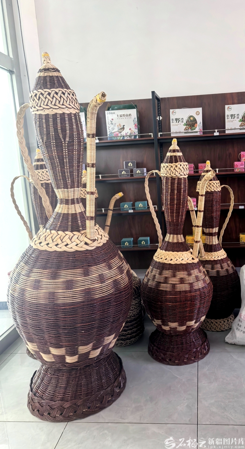 阿图什市哈拉峻乡艺彩坊手工艺品制作专业合作社的柳编工艺品深受人们喜爱(资料图)。图/阿依娜古丽·买买提托合提供