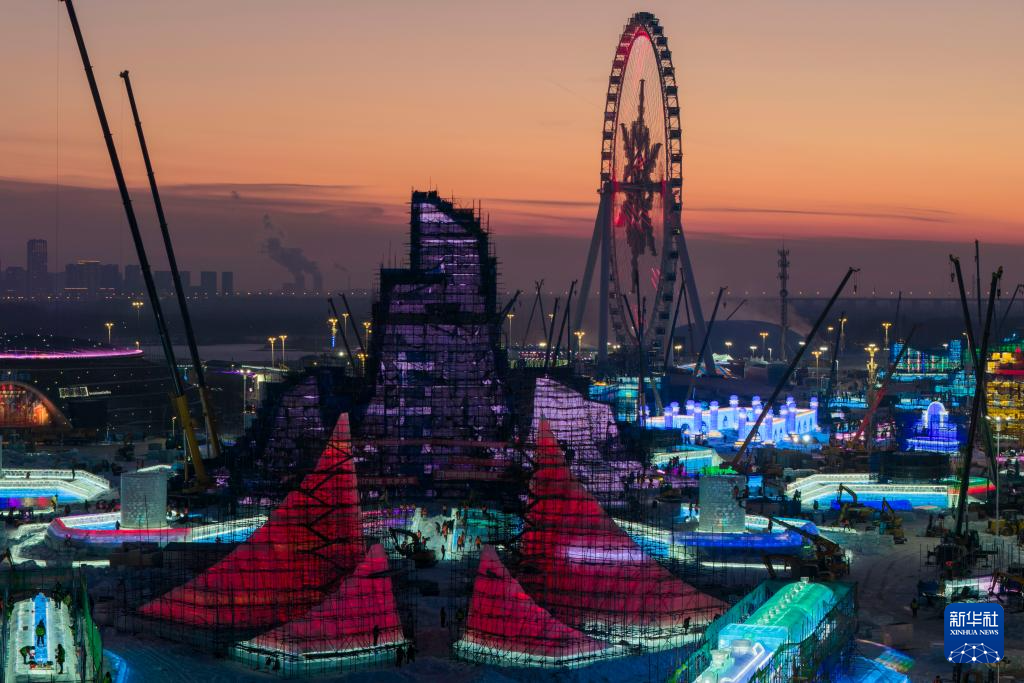 第二十七届哈尔滨冰雪大世界主塔“冰灯启梦”封顶