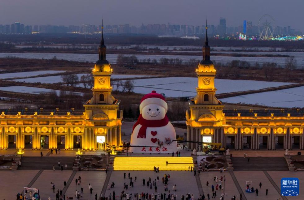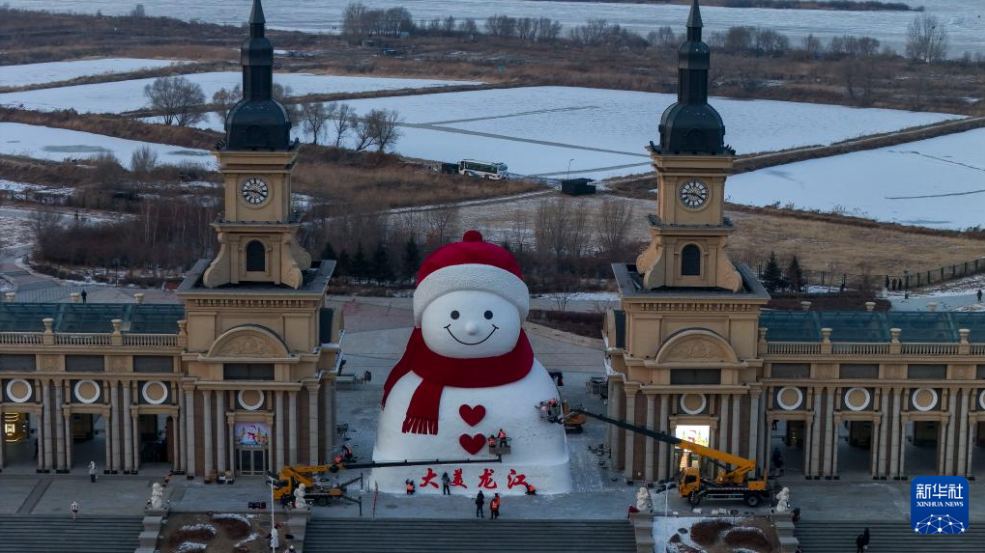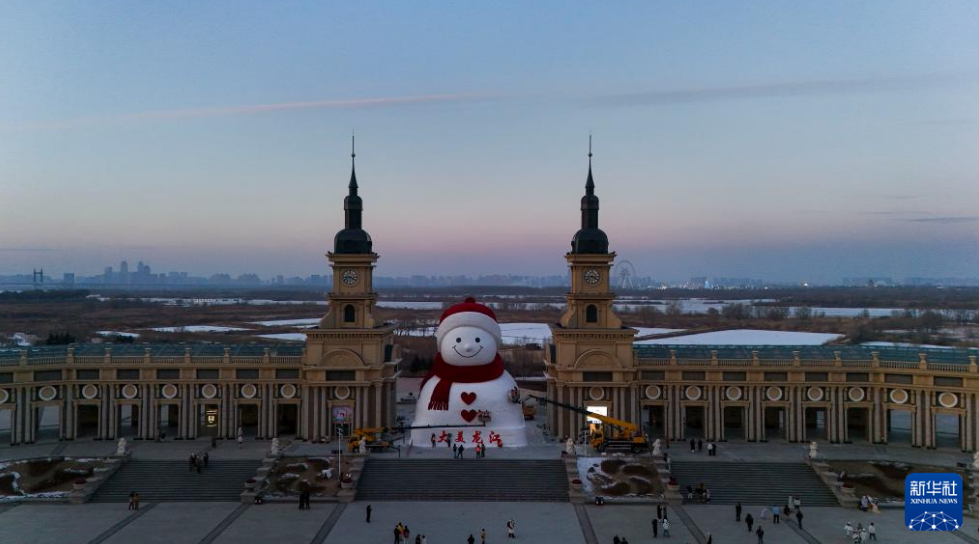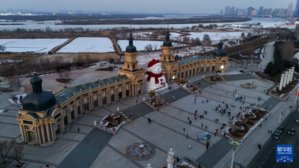 这是12月15日在哈尔滨市群力音乐公园拍摄的大雪人(无人机照片)。