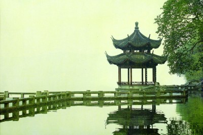 西湖的许多亭子历经过多次损毁及重建,诞生了无数传唱至今的故事和传说,承载起一代代人的情感与记忆。为了更好地还原西湖诸亭的古韵,我采用国画颜料手工上色的方式处理拍摄的图像。国画颜料的独特质感,晕染出的朦胧氛围,恰似西湖的烟雨诗意;手工上色则使图像融入中国传统美学意境,让亭子的造型艺术和西湖的文化底蕴得到结合。