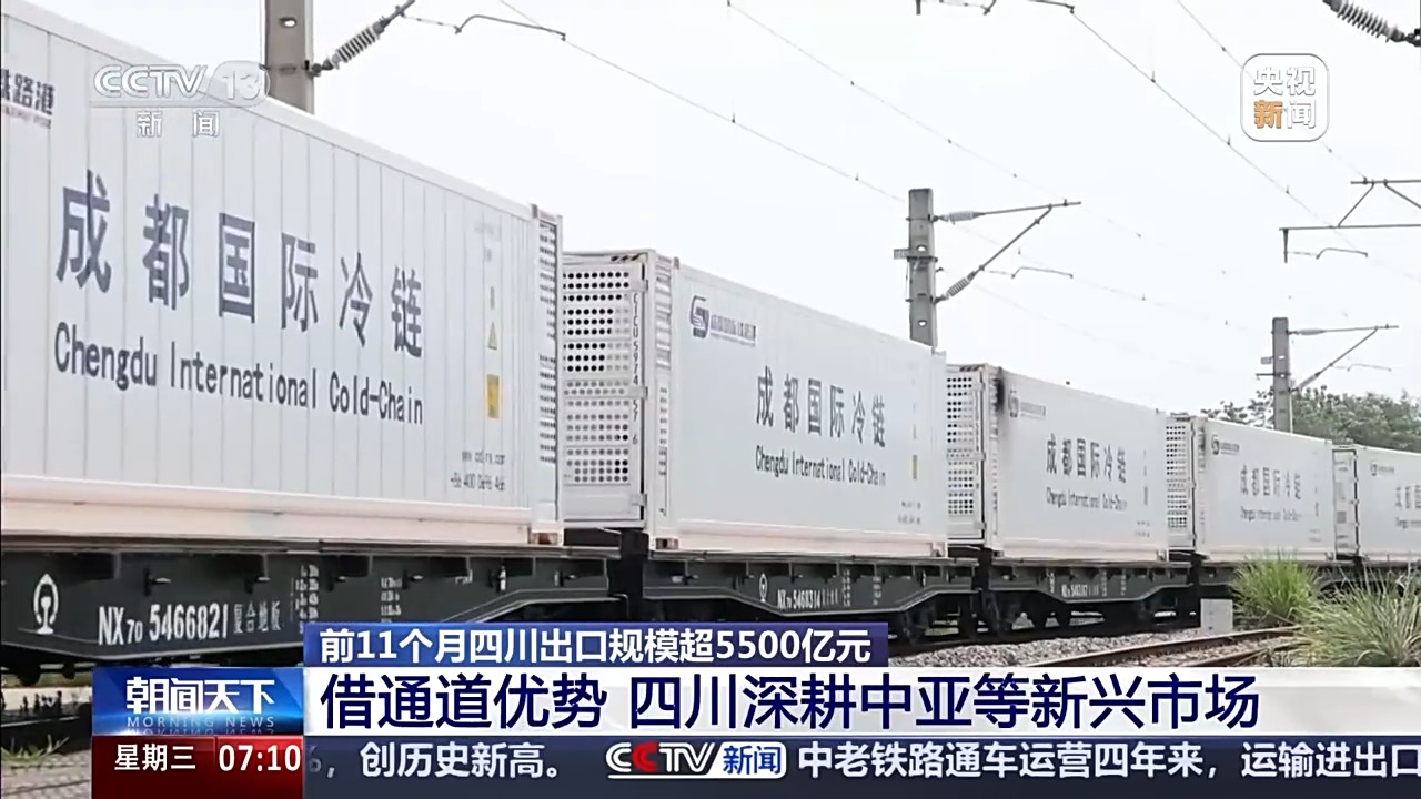 成都海关统计分析处副处长 肖晓文:今年前11个月,四川对中亚市场出口超60亿元,同比增长近三成。其中,对哈萨克斯坦出口同比增长1.2倍。对中亚五国出口的产品中,汽车、光伏产品、锂电池、电视机等占比较大。(总台央视 记者叶奂 杨少鹏 赵菁 赵雄)