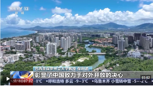 巴西圣保罗州立大学教授 保利诺:我认为中国采取的这项措施(海南自贸港全岛封关运作)彰显了中国致力于对外开放的决心。当一些国家采取保护主义措施损害世界经济时,中国却大力推进对外开放,其双重目标是一方面通过进口,增加国内消费者获得新产品的机会;另一方面通过进一步开放其庞大的市场,与国际经济开展合作。