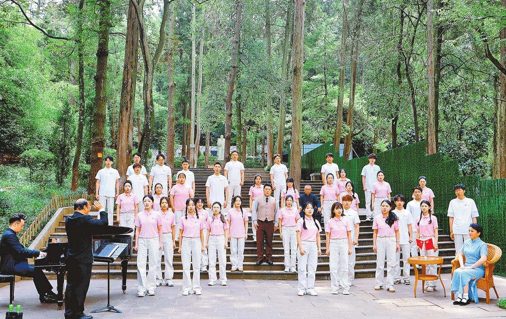 近日,云南艺术学院音乐学院师生来到昆明市西山聂耳墓旁,以一堂特殊的“行走的思政课”形式,演出小歌剧《前进!前进进!》。师生们通过音乐、戏剧与情景交融的表演,生动讲述了《义勇军进行曲》诞生背后的故事。小歌剧《前进!前进进!》从课堂走向实景,是云南艺术学院深化“党建+思政+艺术”育人模式的一次创新实践。学院将思想政治教育与专业艺术教育深度融合,引导师生在艺术创作与表演中坚定理想信念,筑牢思想根基。(云南日报 记者高吴双/摄)