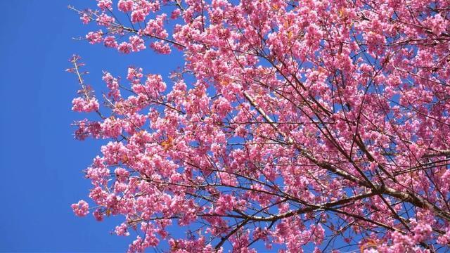 粉红的樱花缀满枝头,绚烂如霞