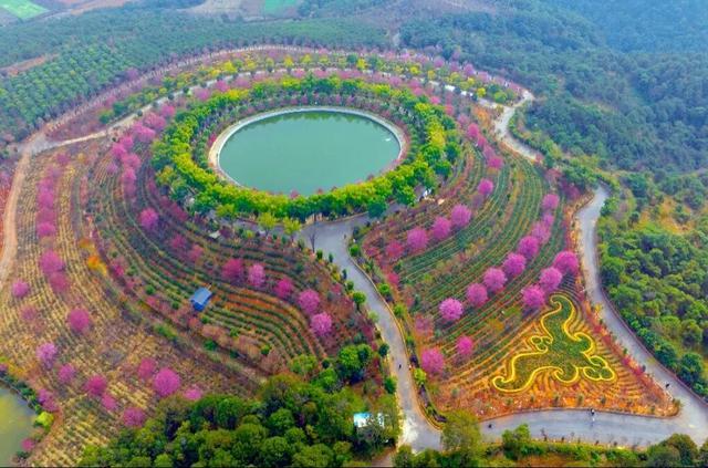 千亩茶园中栽种的万株冬樱花迎冬怒放