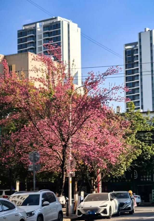 一树树云南樱、冬樱花竞相绽放