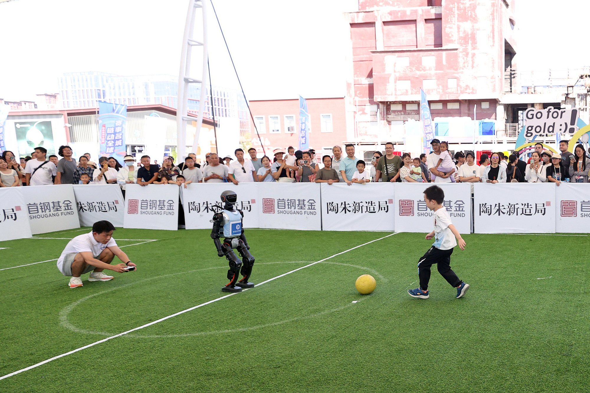 2025年服贸会上,小朋友与机器人互动