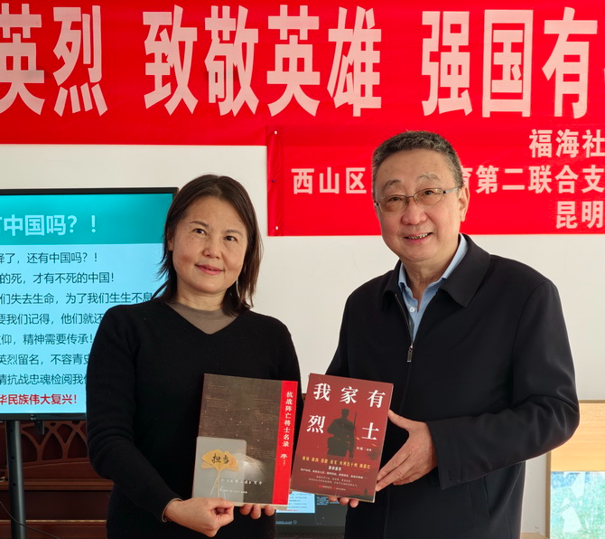 昆明信息港讯 记者江枫 12月19日,昆明炎皇学校举行《勿忘国耻、铭记英烈——弘扬抗战精神,实现中华民族伟大复兴》讲座,主讲人为著名抗日英烈杨杰将军之孙,中国电信云南公司原副总经理王伟,属地居委会,党支部的代表参加。