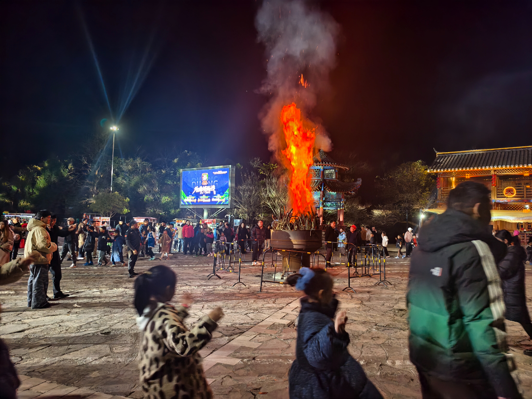 中场休息时,相石阶森林公园的观赛点更是点燃了篝火,球迷们围着跃动的火焰,自发围成圈,随着民族音乐跳起欢快的舞蹈,现场秒变“露天派对”。“现场氛围太燃了!没想到看球还能围着篝火跳舞,像过节一样!”带着家人前来观赛的罗平本地居民杨几贤兴奋地说。