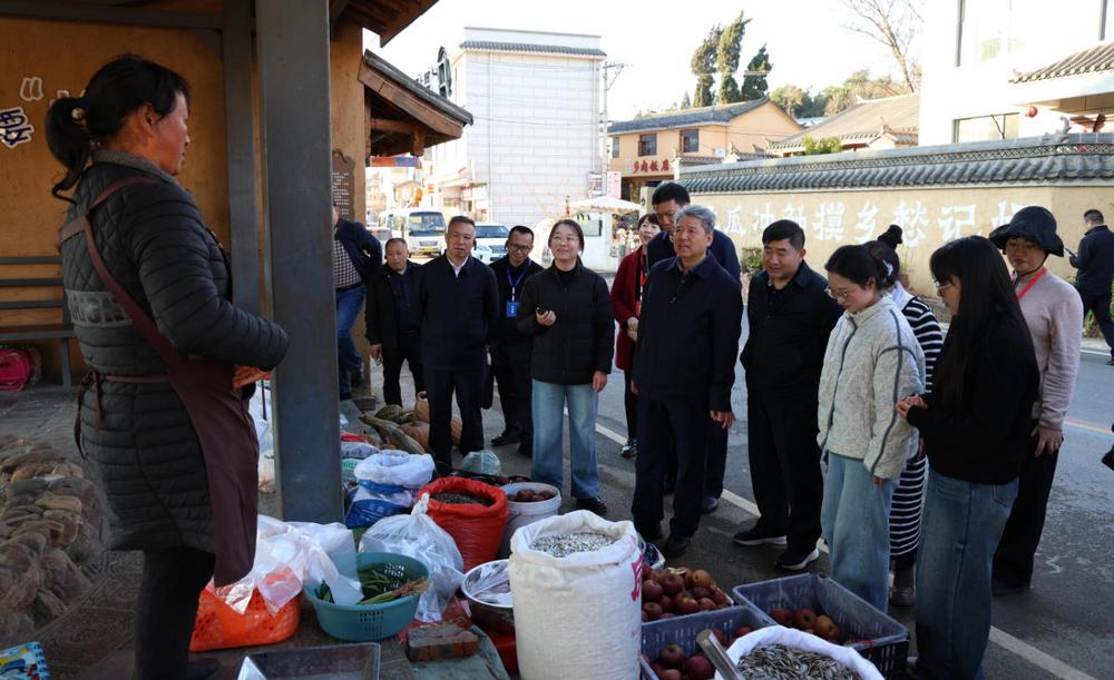 第二小组在楚雄彝族自治州领略交通建设与乡村振兴的生动画卷。代表们参观公路旅游项目读书铺服务区后,一路向西,实地了解楚雄民用运输机场规划、东南绕城高速公路建设情况,认为这些交通项目对优化滇中地区发展格局、促进区域协调发展具有重要意义,期盼早日将规划蓝图变为现实。走进楚雄工业园区庄甸医药园区、牟定县牌坊村、杰鲁彝绣专业人大代表工作站,代表们感受民族医药、民族文化产业的独特魅力,见证乡村振兴的累累硕果。在姚安国际花卉拍卖交易中心和沪滇协作花卉产业园,缤纷的鲜花经过分级、定价、拍卖,发往全国各地乃至海外。代表们感慨,这不仅是云南打造“世界花园”的缩影,更是高原特色农业现代化、开放化的生动写照。