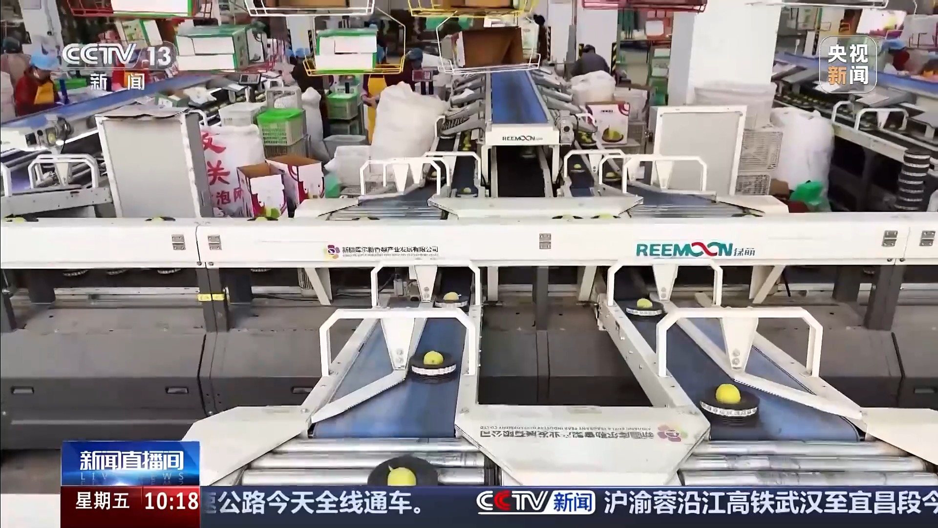 这里是新疆巴州库尔勒市的一家香梨销售企业的品控中心,在现场可以看到,一条自动化香梨挑选生产线正在忙碌运转,将香梨分为不同规格的产品销往全国各地。