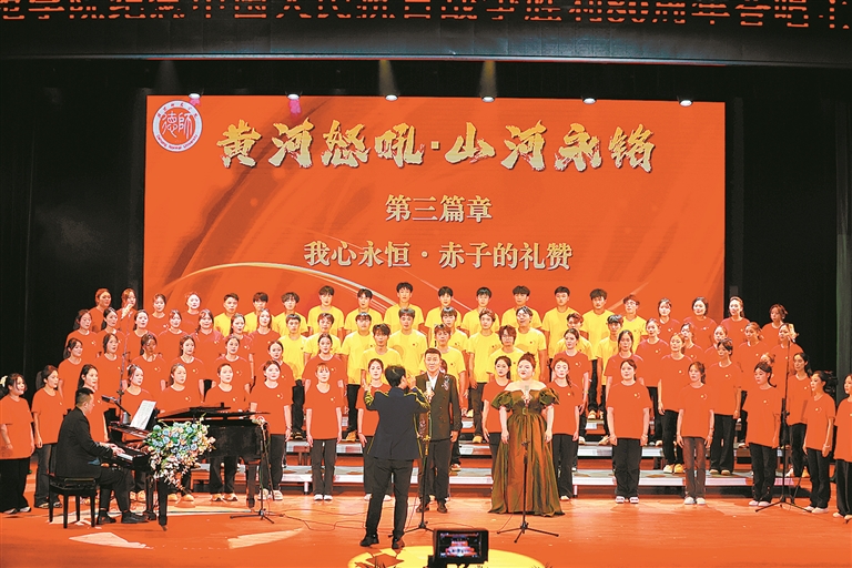 为纪念中国人民抗日战争暨世界反法西斯战争胜利80周年,引导广大师生深切缅怀革命先烈,传承和弘扬伟大抗战精神,有形有感有效地铸牢中华民族共同体意识,德宏师范学院近日在州文化馆举办“黄河怒吼・山河永铭——纪念中国人民抗日战争胜利80周年合唱主题音乐会”。