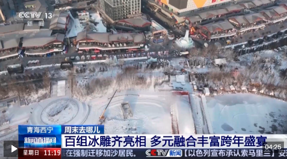 随着元旦临近,不少地方已经提前开启了旅游市场的预热活动。在青海省西宁市城北区的北川青唐城,大型雾凇冰雕群、可口的青海土火锅和热闹的民俗表演,吸引了很多游客前来体验。