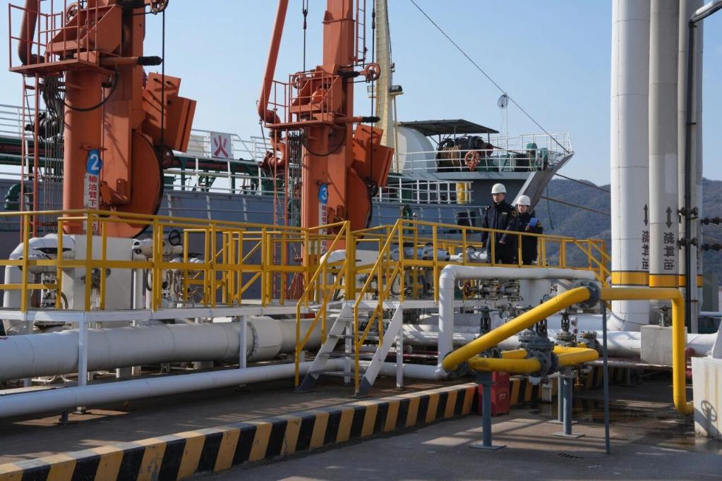 图为长三角海关开展保税燃油跨关区直供业务。(上海海关供图)