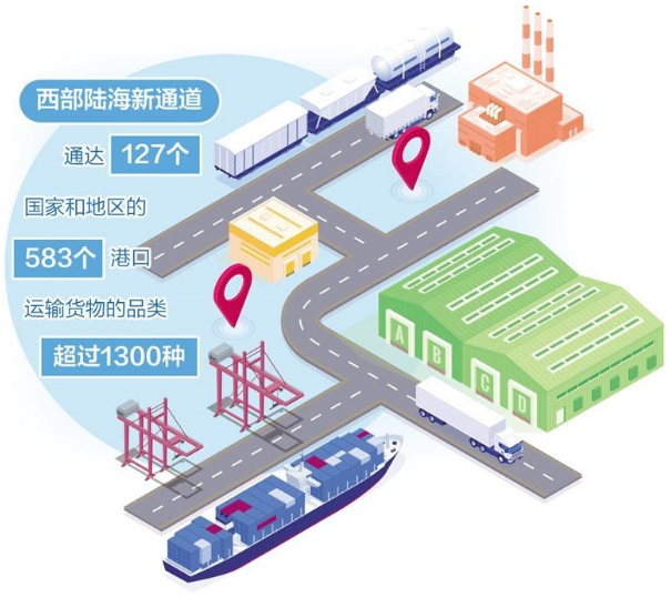 近年来,重庆作为西部陆海新通道物流和运营组织中心,会同沿线各省区推动通道建设越来越快。重庆市委副书记、市政府常务副市长陈新武通过一组数据展现了通道的蓬勃发展——西部陆海新通道通达127个国家和地区的583个港口,运输货物的品类超过1300种,朋友圈越来越广、影响力也越来越大。